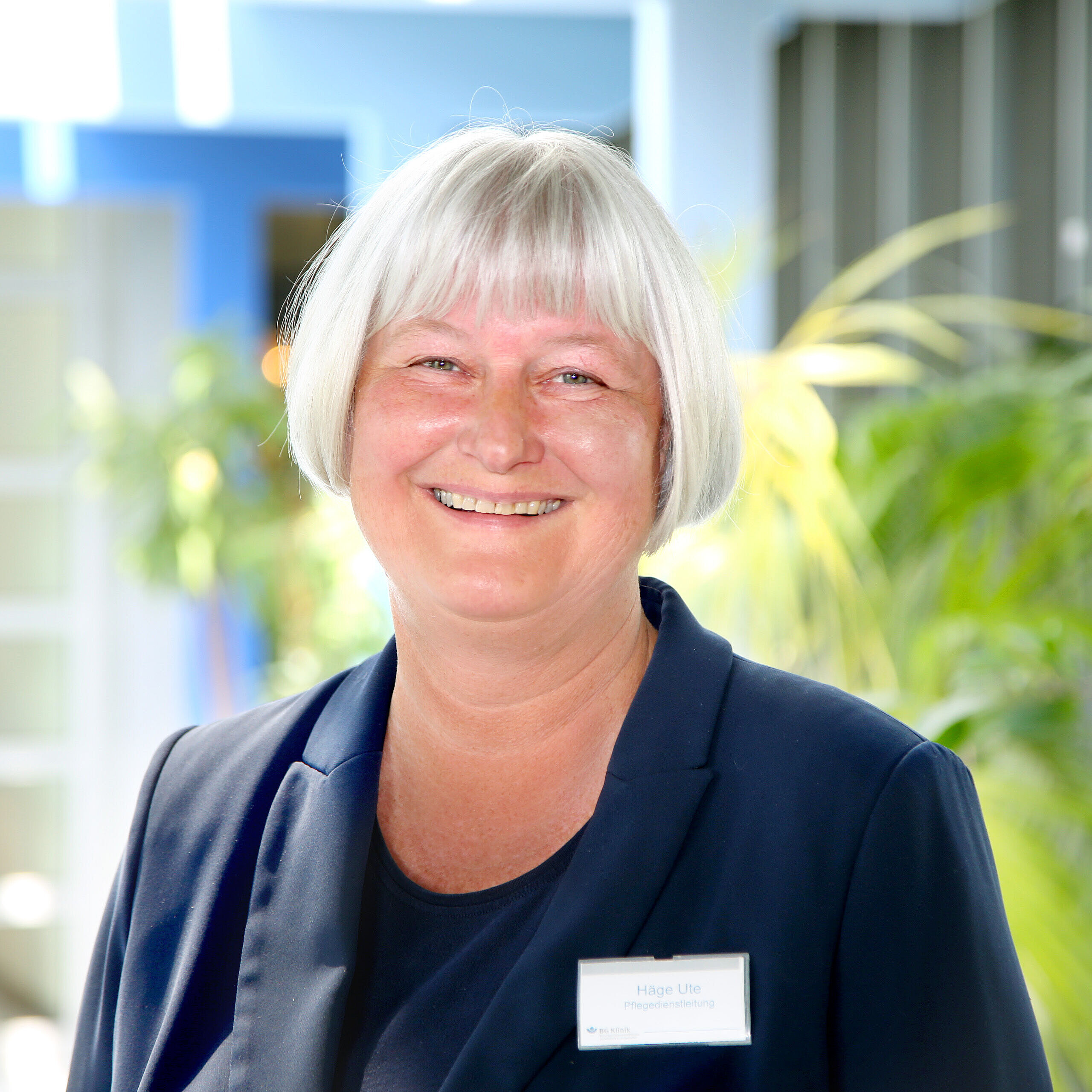 Die dreijährige Ausbildung zur Krankenschwester absolviert Ute Häge von 1986 bis 1989 bei der Schwesternschaft des Roten Kreuzes im Klinikum Mannheim, wo sie auch anschließend auf einer orthopädischen Station arbeitet. Wohnhaft in Oppau bei Ludwigshafen, fällt ihr Blick schon bald auf die Unfallklinik in Oggersheim. Als so genannte „Gestellungsschwester“ bewirbt sie sich zwei Mal um eine Entsendung an die BG Klinik, doch für diese Form der Arbeitnehmerüberlassung müssen die Klinik und das Rote Kreuz erst einmal die vertragliche Grundlage schaffen. 1990 beginnt Ute Häge – als erste Gestellungsschwester der Klinik – auf Station C. Gute zwei Jahrzehnte ist sie vom DRK entsendet, ehe sie schließlich fest von der BG Klinik Ludwigshafen übernommen wird.