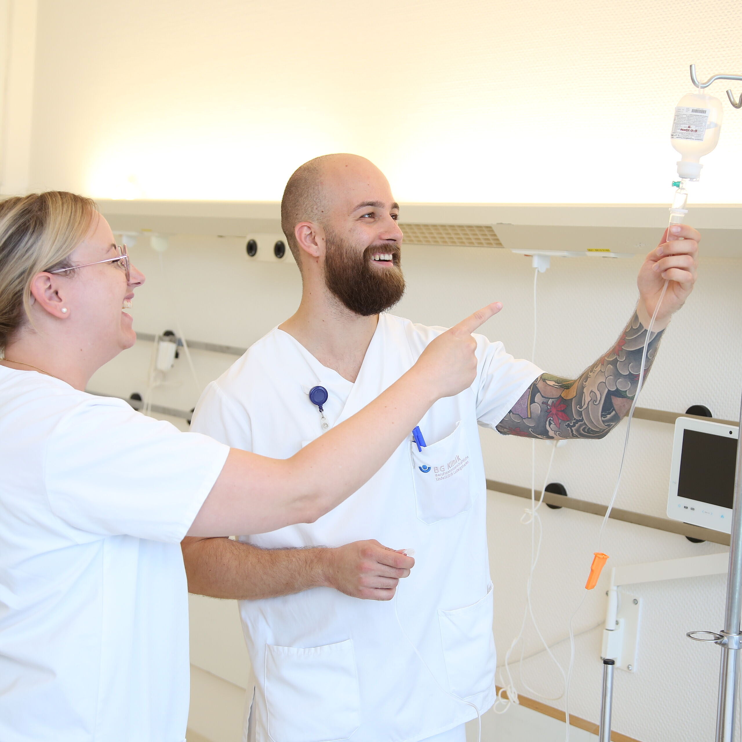 Die Pflege von morgen wird wissenschaftlicher, interdisziplinärer und vernetzter sein. Alle unsere Mitarbeiterinnen und Mitarbeiter in der Pflege nehmen deshalb regelmäßig an fachspezifischen Fortbildungsangeboten teil. Außerdem unterstützen wir aktiv die Teilnahme unserer Beschäftigten an Fachweiterbildungen in der Gesundheits- und Krankenpflege und fördern die akademische Ausbildung von Pflegekräften.