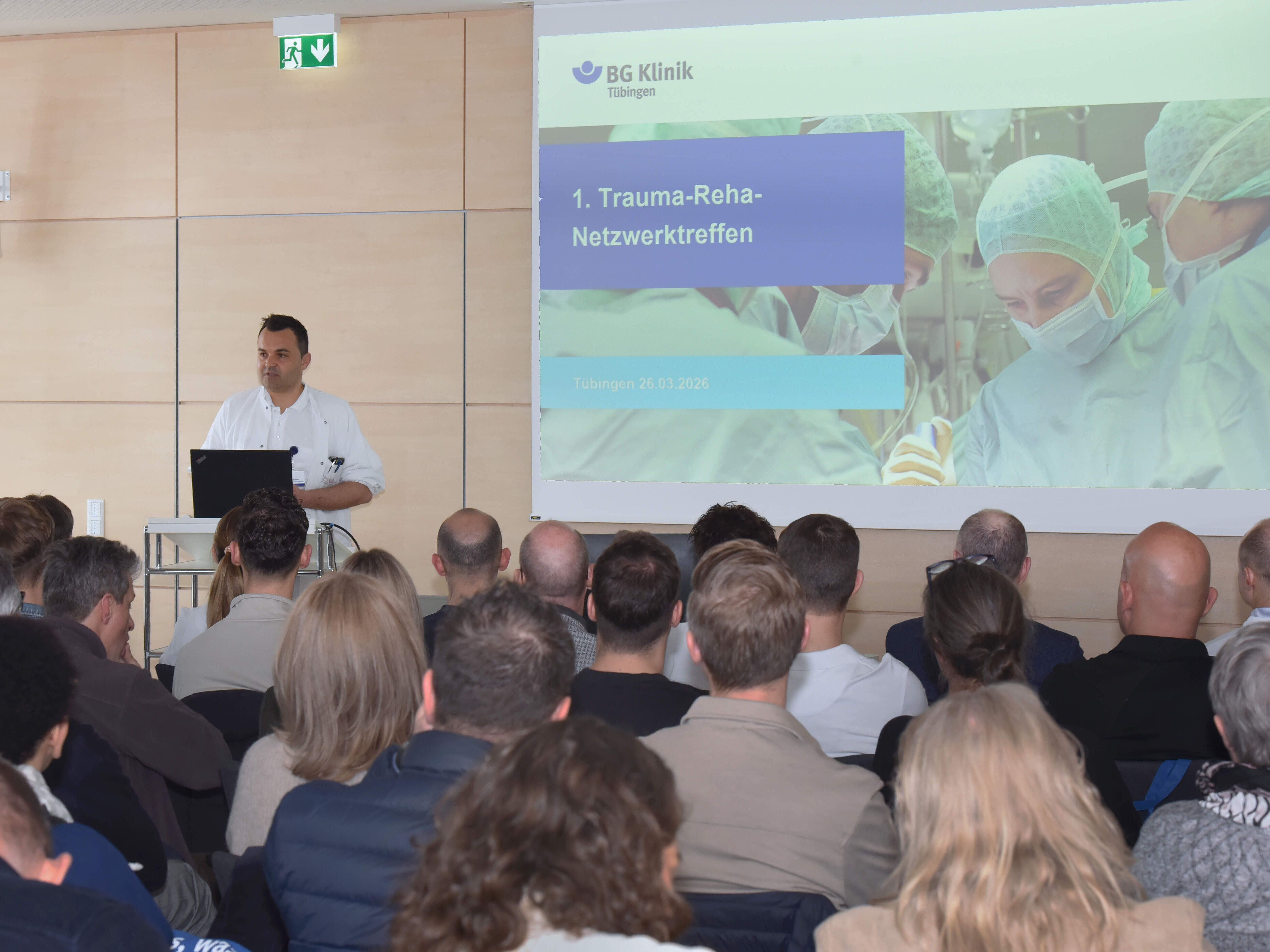 30.03.2026Das erste Trauma-Reha-Netzwerk-Treffen der BG Klinik Tübingen und des Landesverbandes Südwest der Deutschen Gesetzlichen Unfallversicherung e.V. (DGUV) am Donnerstag, 26. März, war ein voller Erfolg. Über 80 Teilnehmende aus unterschiedlichen Kliniken, D-Arzt-Praxen, Therapieeinrichtungen, der Bundeswehr und dem Sozialministerium kamen zusammen, um sich zu aktuellen Herausforderungen und Schnittstellen in der Trauma-Rehabilitation auszutauschen.