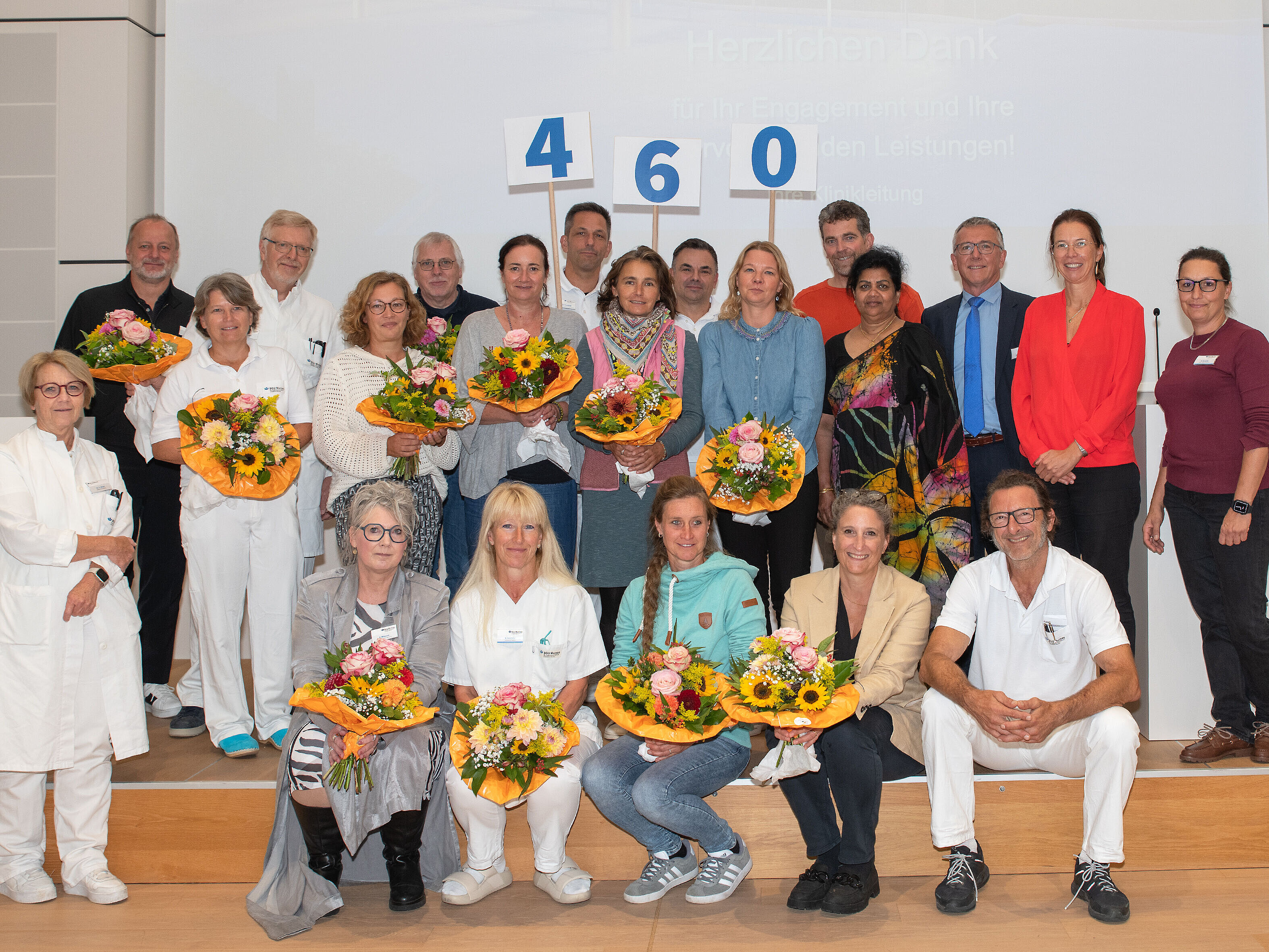 Am 24. September standen an der BG Unfallklinik Murnau die Mitarbeitenden im Mittelpunkt, die im ersten Halbjahr 2025 ihr Dienstjubiläum feierten. Mit vereinten 460 Jahren Klinikzugehörigkeit stehen die Geehrten dabei für ihre große Professionalität, Kontinuität und gelebte Tradition an der Murnauer Unfallklinik. Denn ob 30, 25 oder 20 Jahre im Dienst: Diese Wegmarken sind weit mehr als Stationen im Lebenslauf. Sie zeugen von tiefer Verbundenheit mit der Klinik, dem Team und natürlich auch dem gemeinsamen Ziel, Menschen zu helfen.