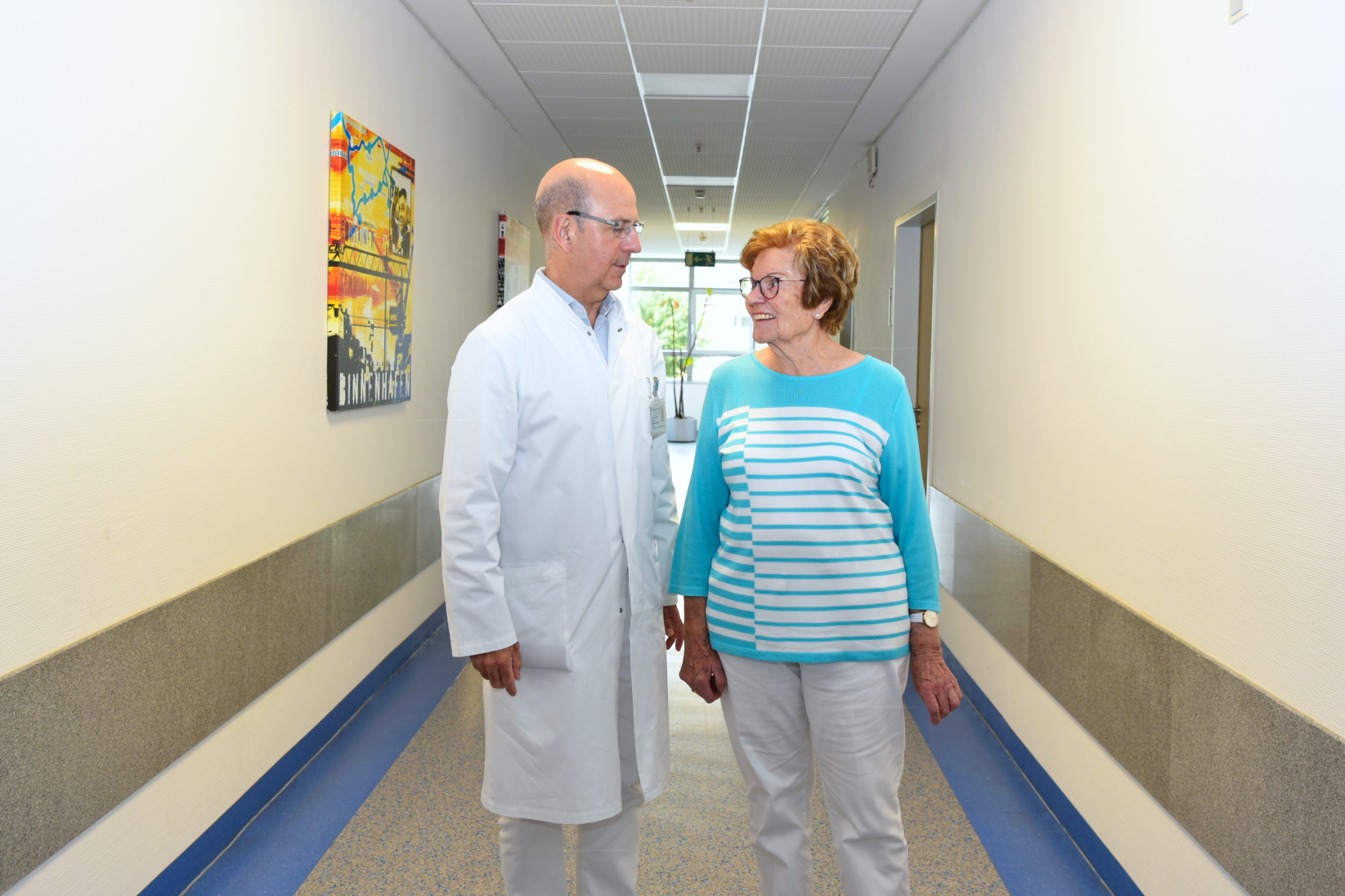 Bild: „Weniger Schmerzen, mehr Lebensqualität“: Die 84-jährige Patientin im Gespräch mit Prof. Martínez. Bildnachweis: Bergmannsheil