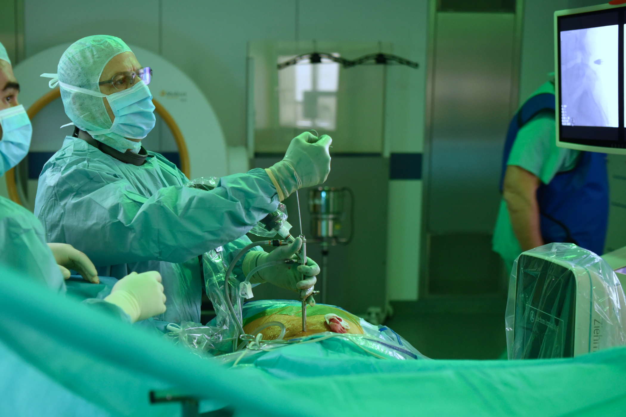 Die Klinik für Neurochirurgie und Wirbelsäulenchirurgie hat das neue System vor wenigen Wochen in Betrieb genommen und bereits die ersten Patienten erfolgreich auf diese Weise operiert. Bei diesem Verfahren führt der Operateur über einen winzigen Hautschnitt ein dünnes Röhrchen mit Kamera und Lichtquelle in den Zielbereich ein. Das Bild aus dem Inneren wird live auf einen Monitor übertragen, sodass der Operateur genau sieht, wo er arbeitet. Über einen separaten Kanal im Endoskop lassen sich feine Instrumente einführen, um krankhaftes Gewebe oder einen Bandscheibenvorfall gezielt zu entfernen. Ein integriertes Spül- und Absaugsystem sorgt dafür, dass das Sichtfeld jederzeit sauber bleibt.